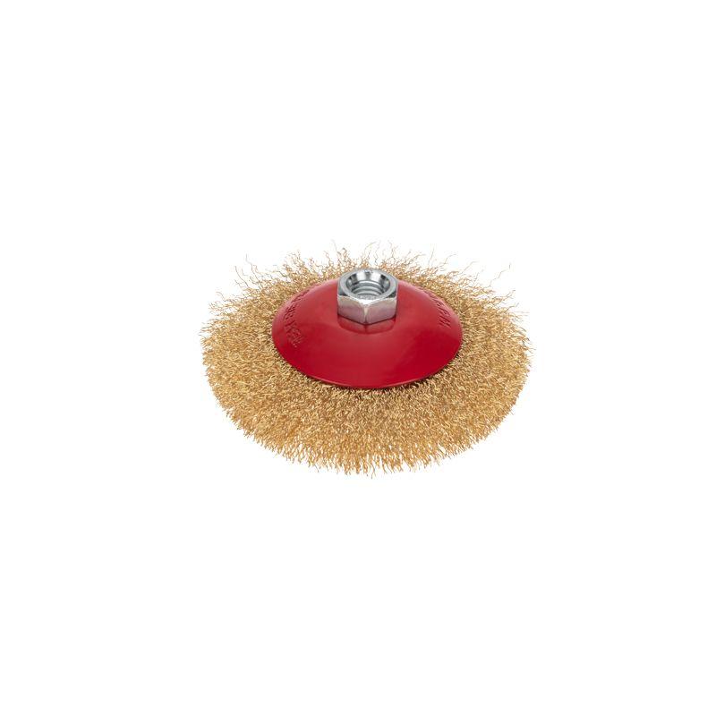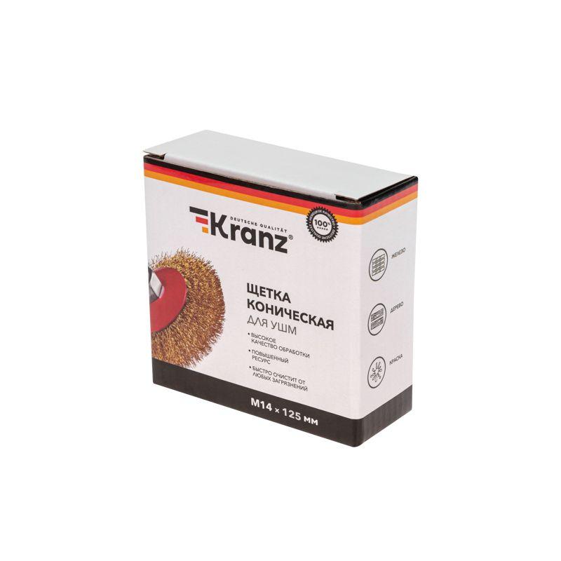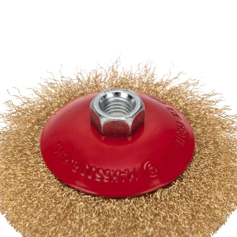 Щетка коническая для УШМ витая латунированная проволока 125мм М14 Kranz KR-91-1207