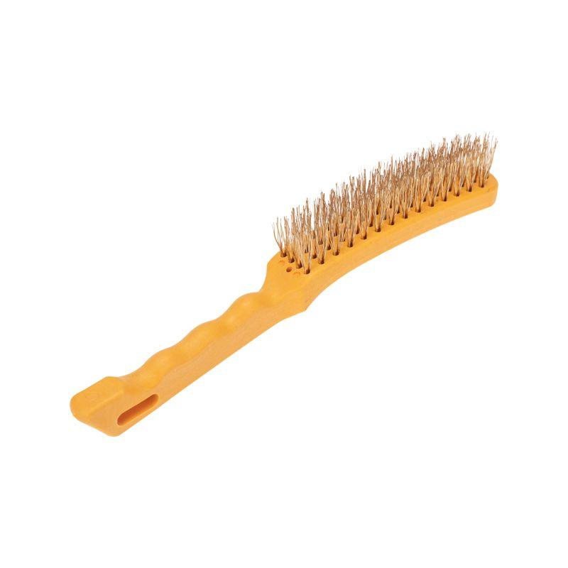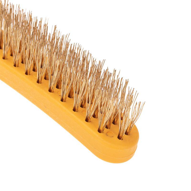 Латунированное покрытие значительно продлевает срок службы щетки. Эргономичная рукоятка, изготовленная из высококачественного пластика, обеспечивает хороший захват и удобство в работе.