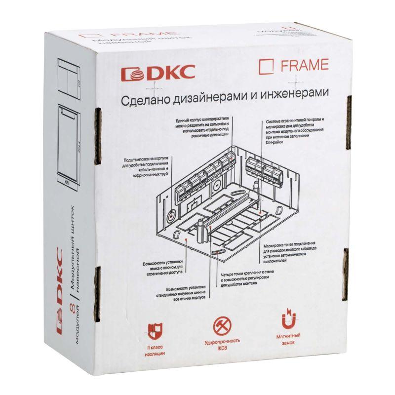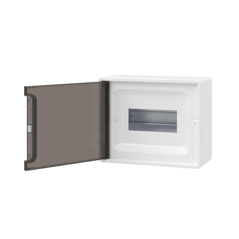 F08W1WD | Щиток 8 мод. настенный FRAME с тонированной дверцей с 2 шинами PEN на 6 и 8 отв. бел. DKC