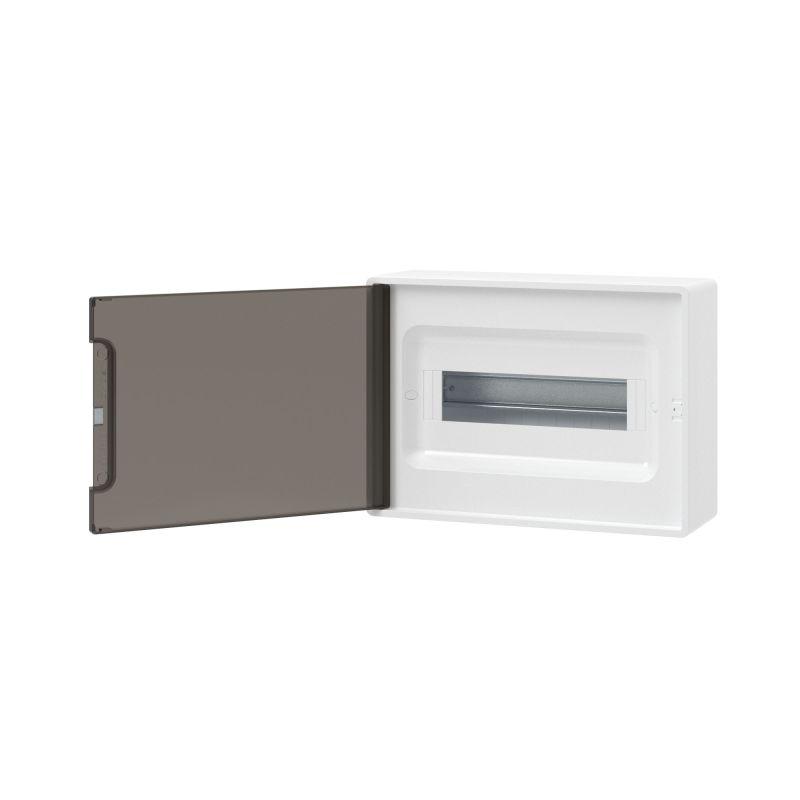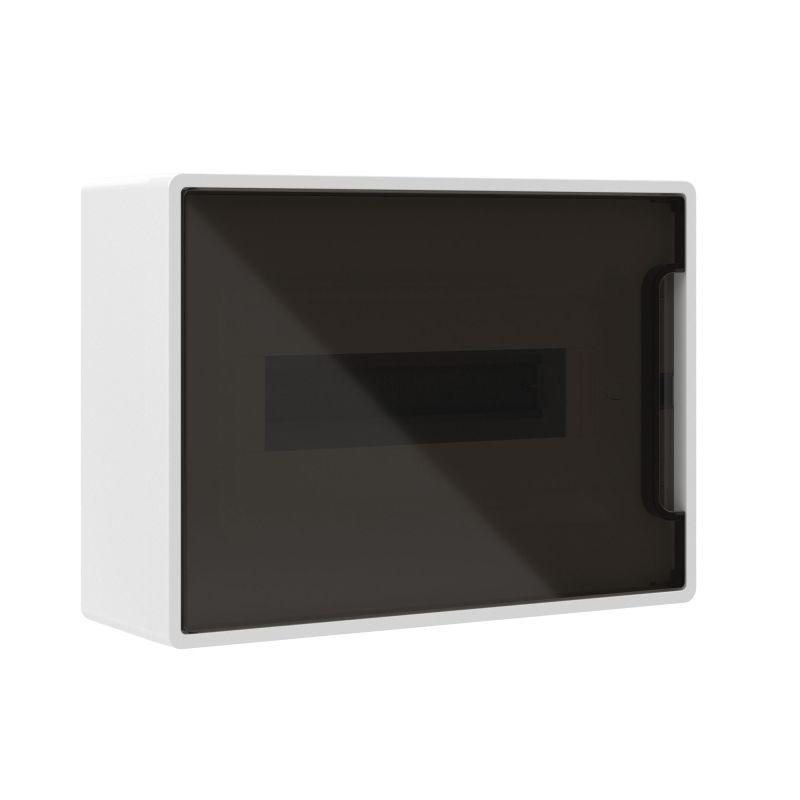 F12W1WD | Щиток настенный 12мод. FRAME с тонированной дверцей с 2 шин PEN на 8+6 отверст. бел. DKC