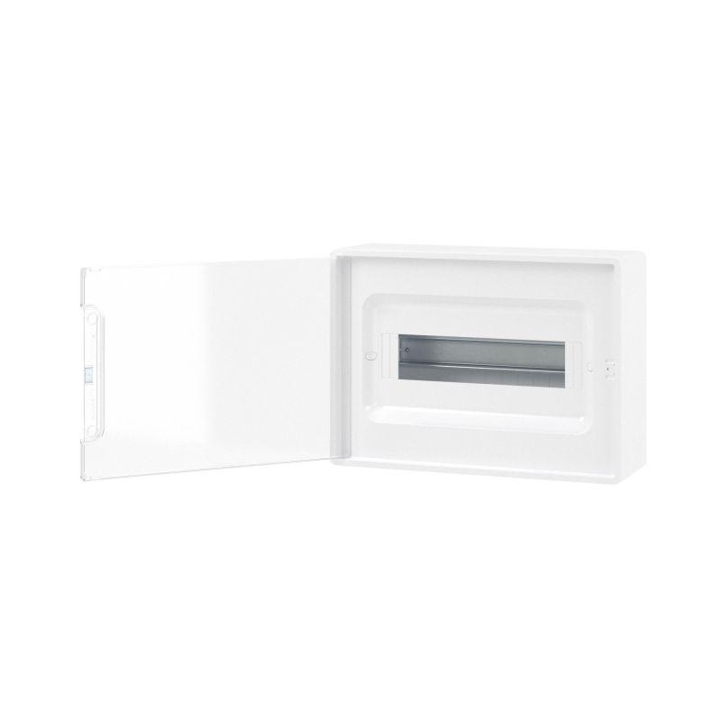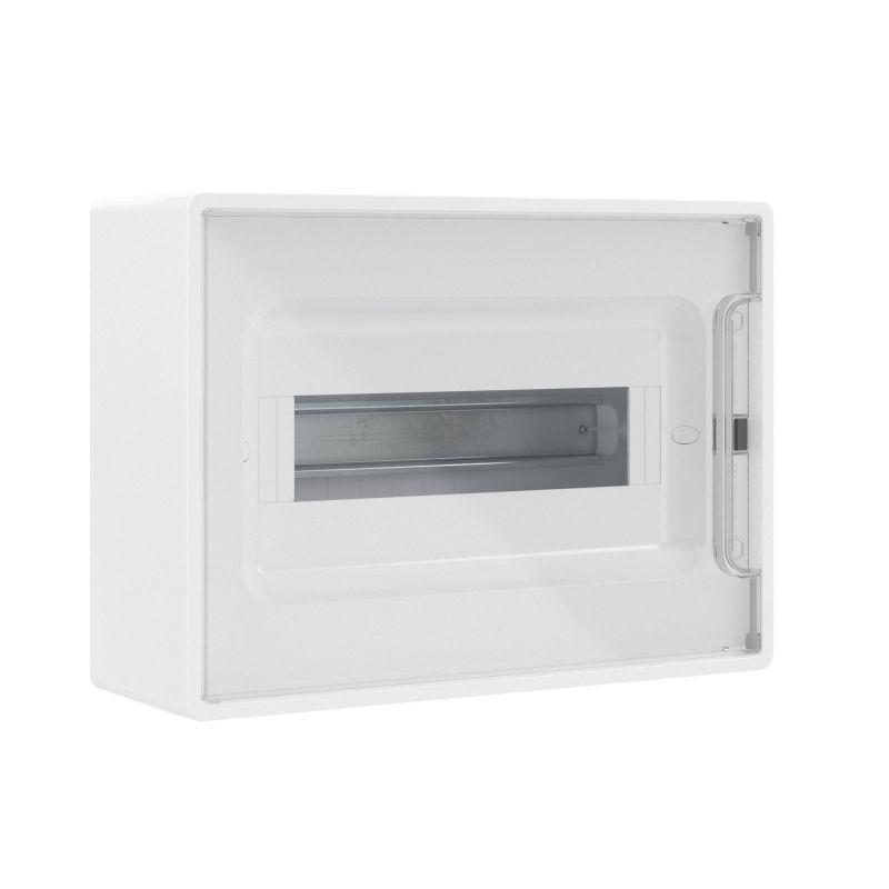 F12W1WT | Щиток настенный 12мод. IP41 с прозр. дверцей с 2 шинами PEN на 8+6 отверст. бел. DKC