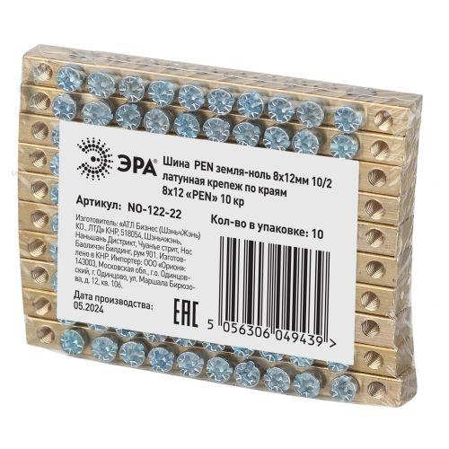 Шина NO-122-22 PEN земля-ноль 8х12мм 10/2 латунная крепеж по краям Эра Б0047237