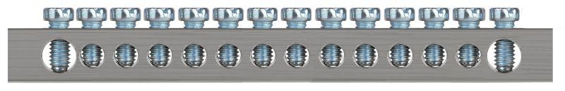 Изделие выполнено из латунной шины сечением 6?9 мм с никелированным покрытием для высокой коррозионной стойкости материала и позволяет одновременно подключать проводники из меди и алюминиевого сплава серии 8000.