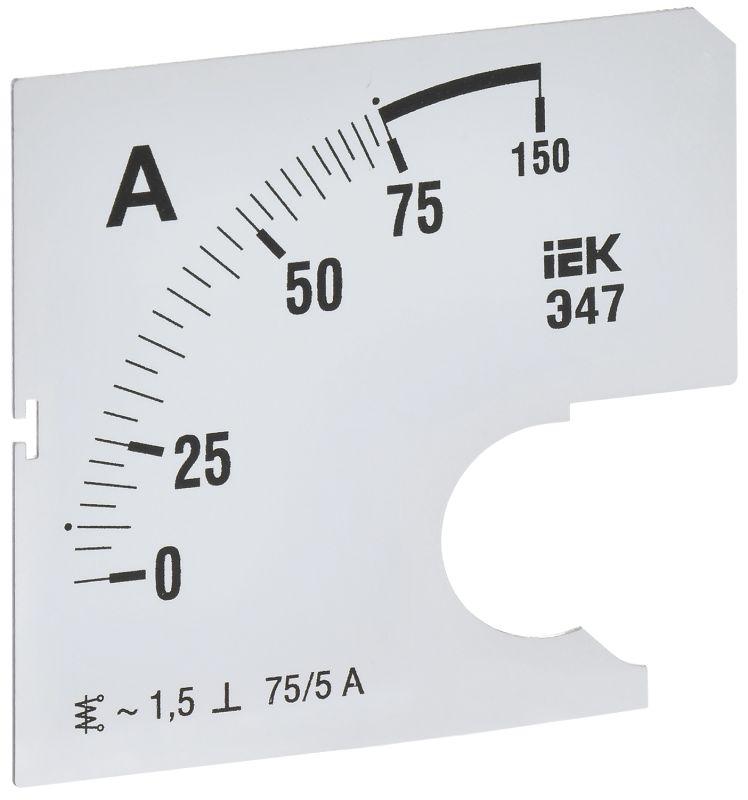Шкала сменная для амперметра Э47 75/5А-1.5 72х72мм IEK IPA10D-SC-0075