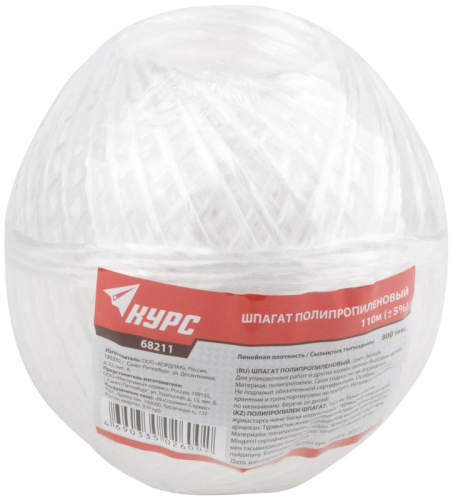 68211 | Шпагат полипропиленовый 800 текс 110м бел. КУРС