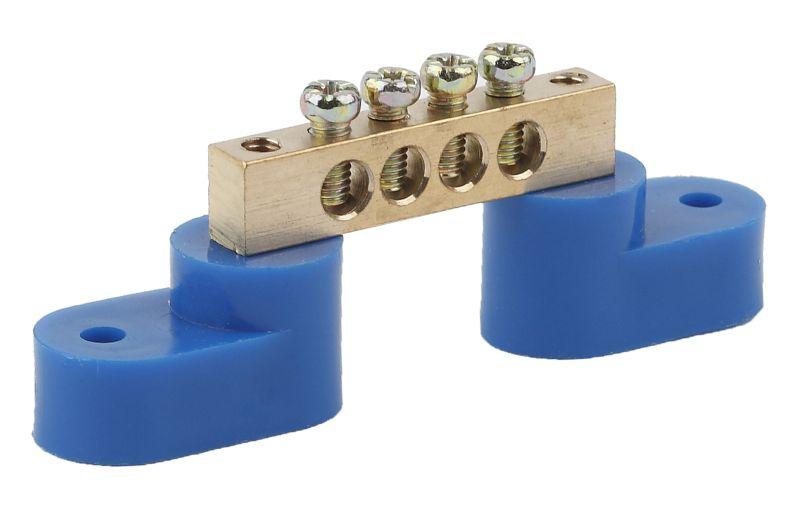 Шина N "ноль" на двух угловых изоляторах ШНИ-8х12-4-У2 NO-222-65 син. ЭРА Б0033444