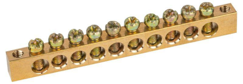 Б0047218 | Шина NO-122-04 PEN "земля-ноль" 6х9мм 10/2 с креплениями по краям латунь ЭРА