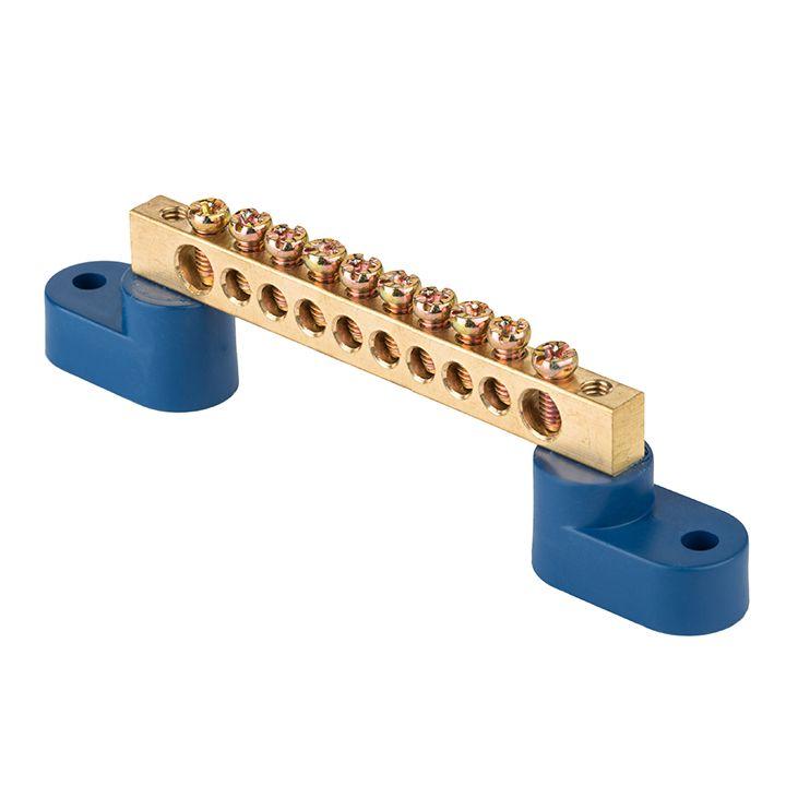 Товар Шина нулевая N 6х9 10 отверстий 2 синих угловых изолятора латунь PROxima EKF sn0-2-63-10 доступен с доставкой по г. Санкт-Петербург, Ленинградской области и территории РФ, или самовывозом.