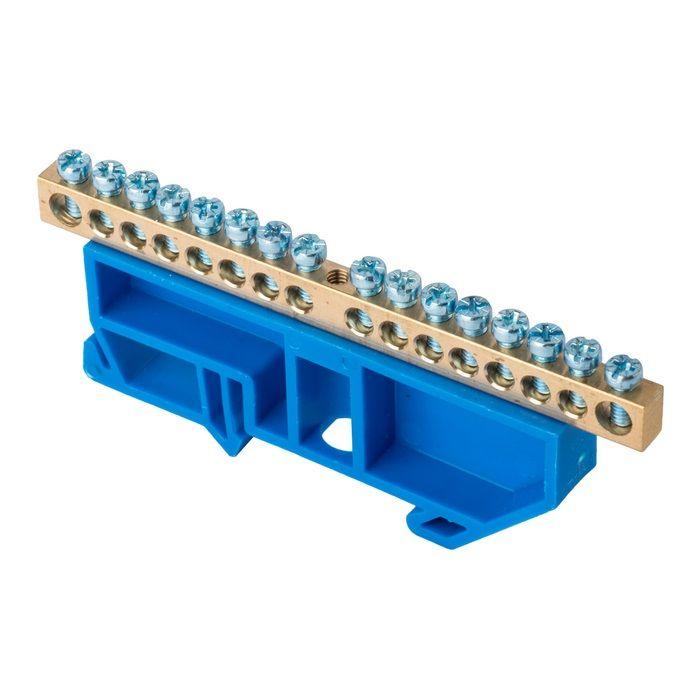 Шина нулевая N 6х9 16 отвер. латунь син. изолятор на DIN-рейку PROxima EKF sn0-63-16-d