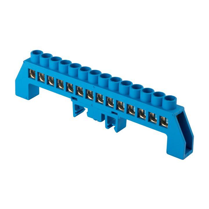Шина нулевая N 8х12 14 отвер. латунь син. нейлоновый корпус комбинированный PROxima EKF sn0-125-14-dn