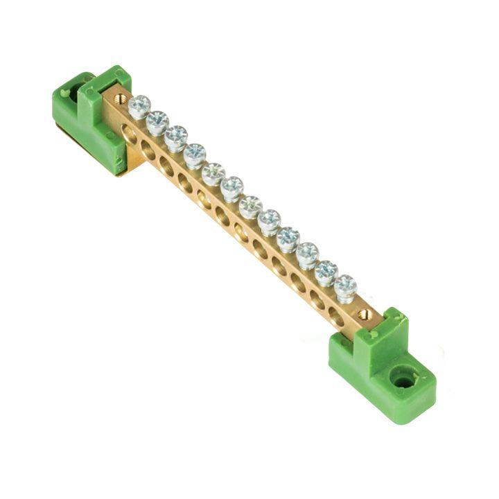 Шина нулевая PE 6х9 12 отвер. латунь с контактной пластиной 2 зел. угловых изолятора PROxima EKF sn0-63-12-2-pe