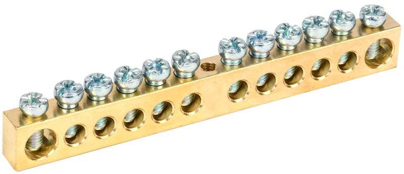 Шина PEN "ноль-земля" 8х12 12 отвер. латунь крепеж по центру PROxima EKF sn0-125-12-c
