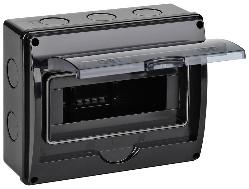 69011Ч | Щиток ОП Тусо на 10мод.с вертик.двер.250х200х107мм черн. Ruvinil