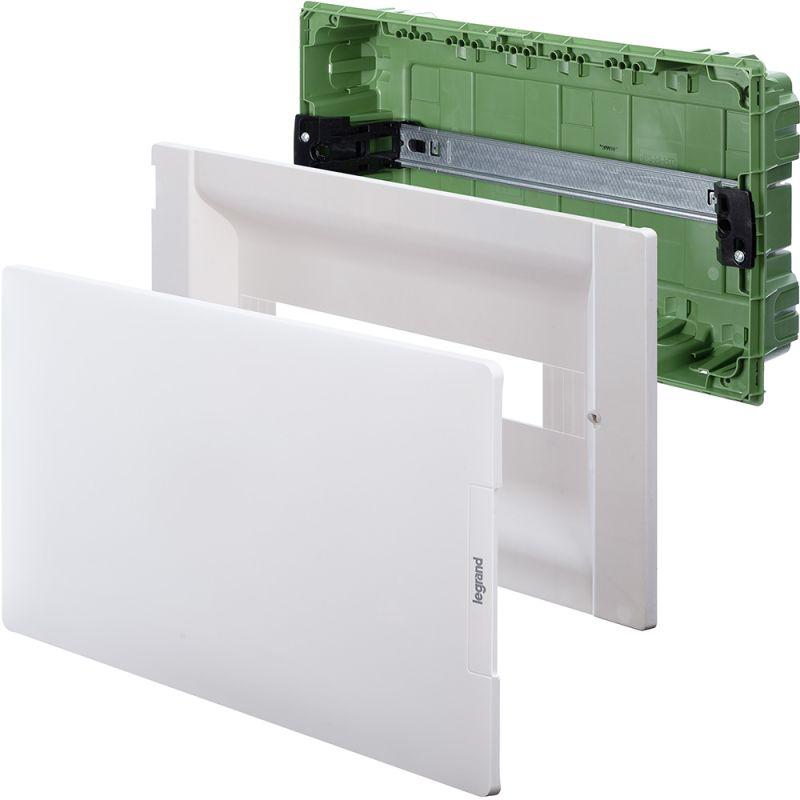 401716 | Щиток распределительный СП Practibox3 IK 07 1 рейка 18мод. с клеммник. заземл. IP40 бел. дверь Leg