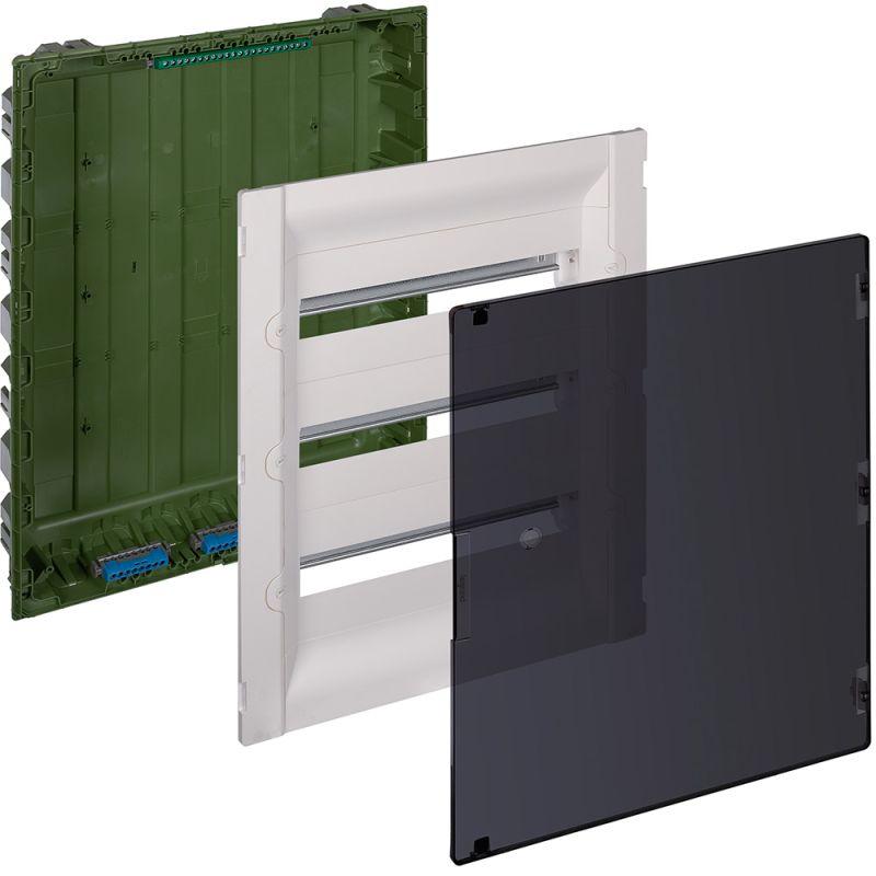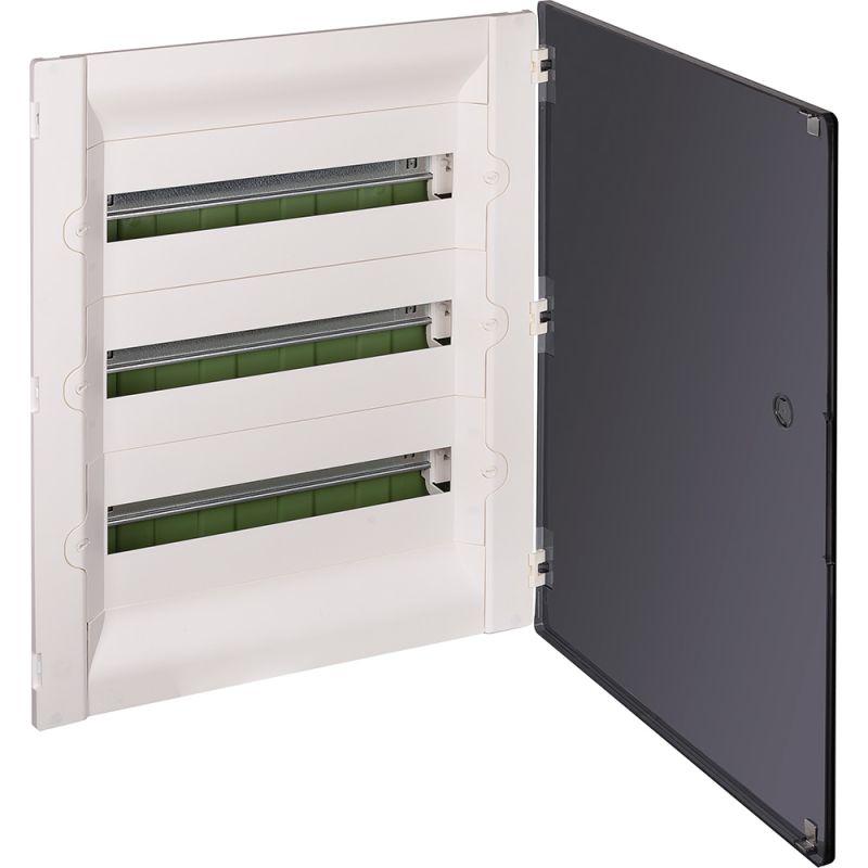 401758 | Щиток распределительный СП Practibox3 IK 07 3 рейки 54мод. с клеммник. заземл. и нейтрали IP40 прозр. дверь Leg
