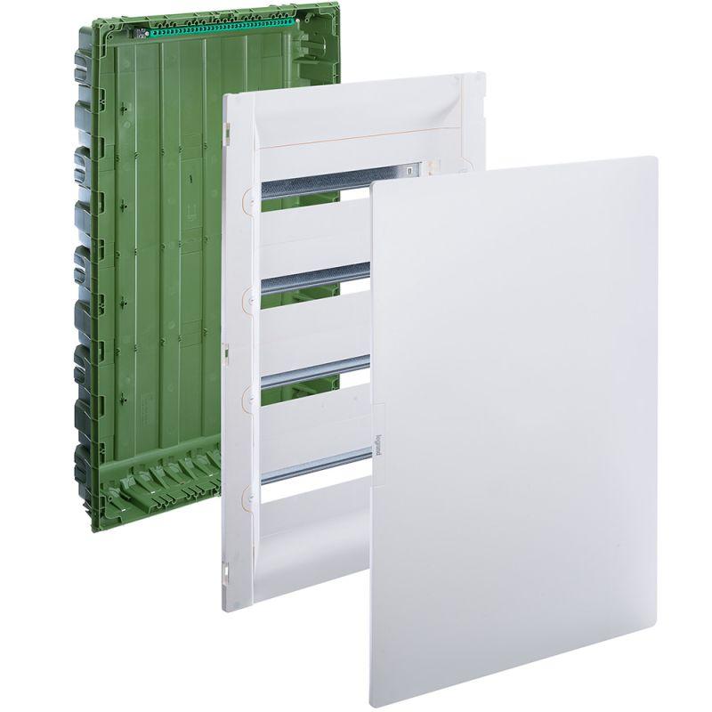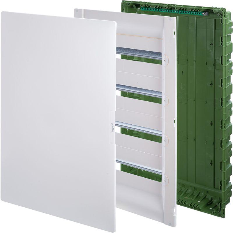 401719 | Щиток распределительный СП Practibox3 IK 07 4 рейки 72мод. с клеммник. заземл. IP40 бел. дверь Leg