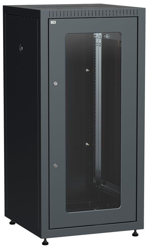 LE05-24U66-GM | Шкаф сетевой LINEA E 24U 600х600мм стекл. передняя дверь задняя металлическая черн. ITK