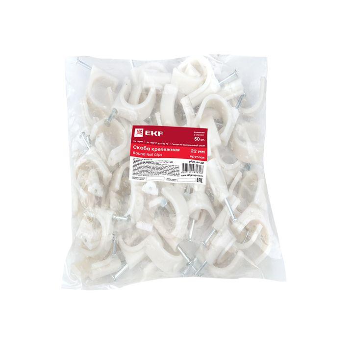 Скоба крепежная круглая с гвоздем d22мм пластик. (уп.50шт) EKF plcn-sr-22