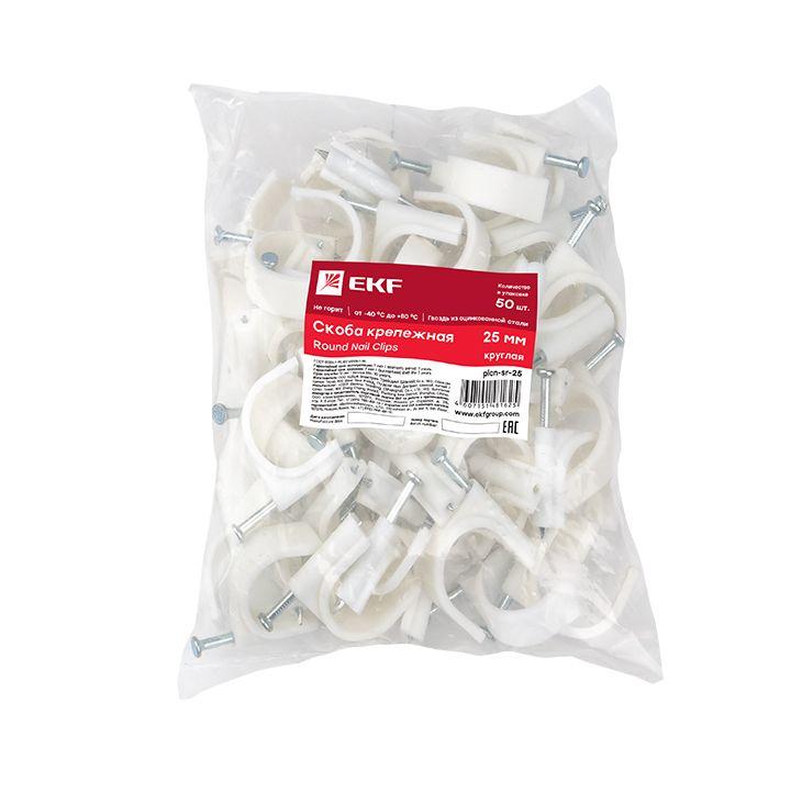 Скоба крепежная круглая с гвоздем d25мм пластик. (уп.50шт) EKF plcn-sr-25