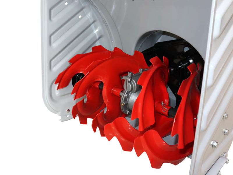 Колёсный самоходный снегоуборщик поддерживает 5 скоростей в направлении вперёд и 2 назад. Благодаря металлическому шнеку он измельчает даже пласты обледеневшего снега. Снежную крошку подхватывает поток ветра, созданный вентилятором, и отбрасывается в сторону через специальный желоб. Это обеспечивает быструю и эффективную уборку небольшого земельного участка зимой. Выброс снега удобно регулировать с помощью специального рычага.