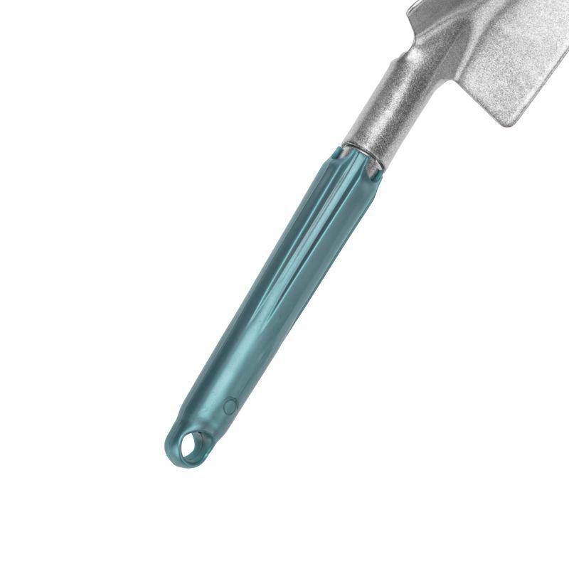 Также в рукоятке предусмотрено отверстие, позволяющее размещать совок на вертикальных поверхностях, что обеспечивает удобство хранения и позволяет экономить место на рабочем пространстве.