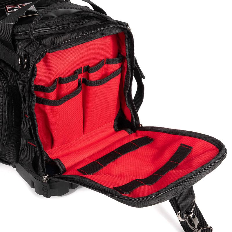 • 1 основное отделение с 2 большими карманами и 8 мини-карманами для узких предметов, 4 средними карманами у передней стенки, крепежными элементами из эластичной ленты