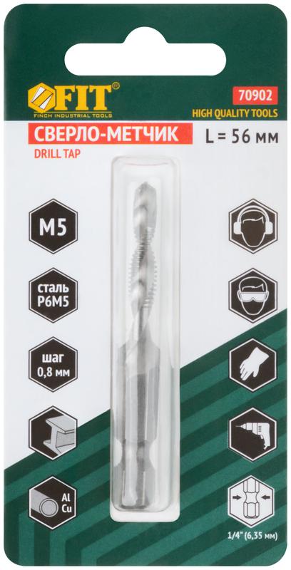 Сверло-Метчик комбинированное метрическое быстрорежущая (HSS) сталь Р6М5 М5х0.8мм 17/56мм FIT 70902