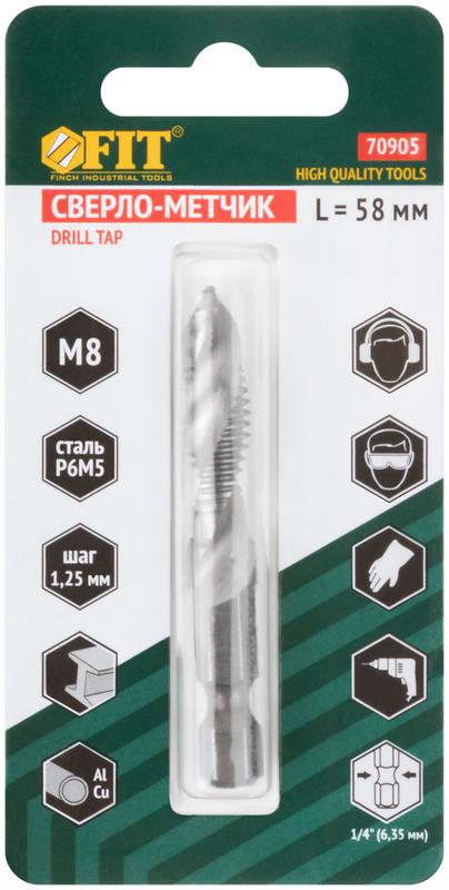 Сверло-Метчик комбинированное метрическое быстрорежущая (HSS) сталь Р6М5 М8х1.25мм 24/58мм FIT 70905