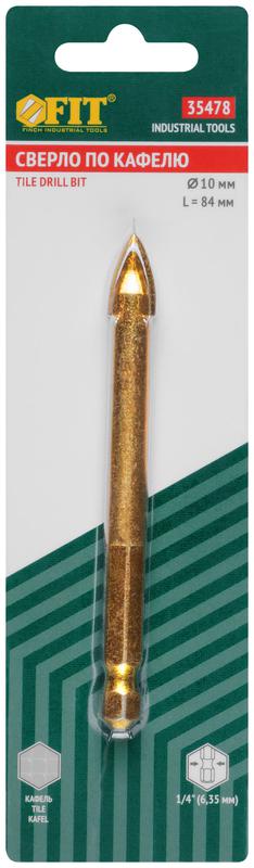 Сверло по кафелю 4 режущие кромки титан. покрытие U-хвостовик под биту 10х84мм FIT 35478
