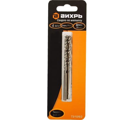 Сверло по металлу 4мм P6M5 (блист.2шт) Вихрь 73/10/6/2