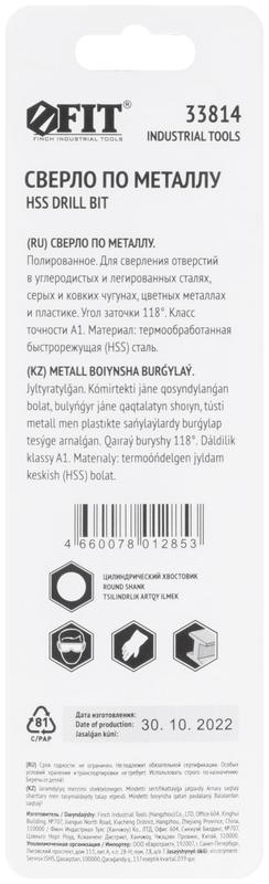 Сверло по металлу HSS 6.0мм полированное (блист.) FIT 33814