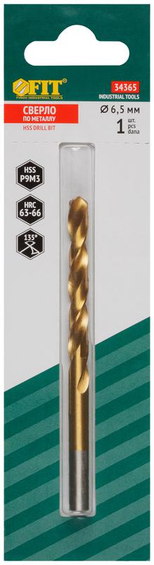 Сверло по металлу HSS 6.5мм титан. покрытие (блист.) FIT 34365