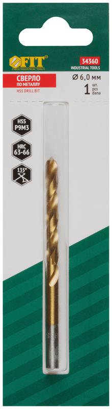 34360 | Сверло по металлу HSS 6мм титан. покрытие (блист.) FIT