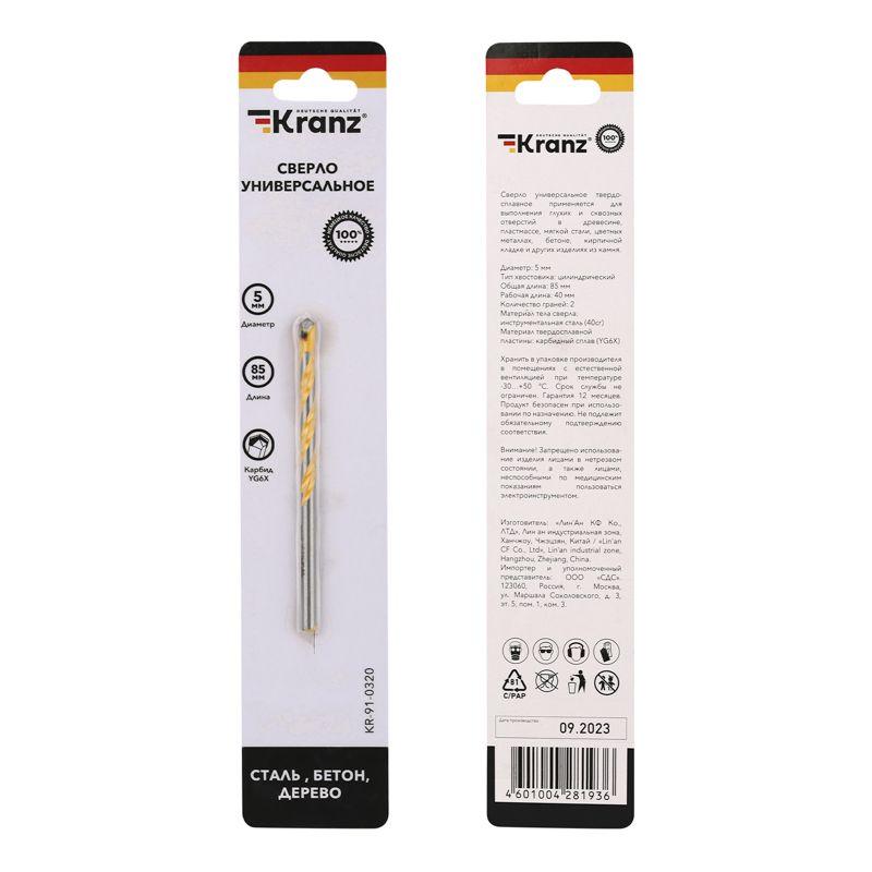 KR-91-0320 | Сверло универсальное твердосплавное 5мм Kranz