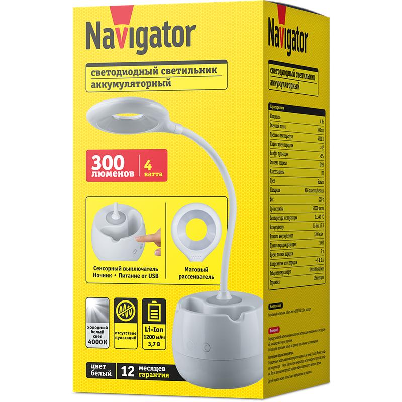 Светильник светодиодный настольный 93 158 NDF-D032-4W-4K-WH-LED 4Вт 4000К 300лм сенсор USB с подставкой для канц. на основании бел. Navigator 93158