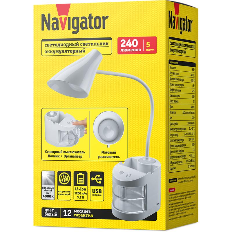 Светильник светодиодный настольный 93 159 NDF-D036-5W-4K-WH-LED 5Вт 4000К 240лм сенсор USB с подставкой для канц. на основании бел. Navigator 93159