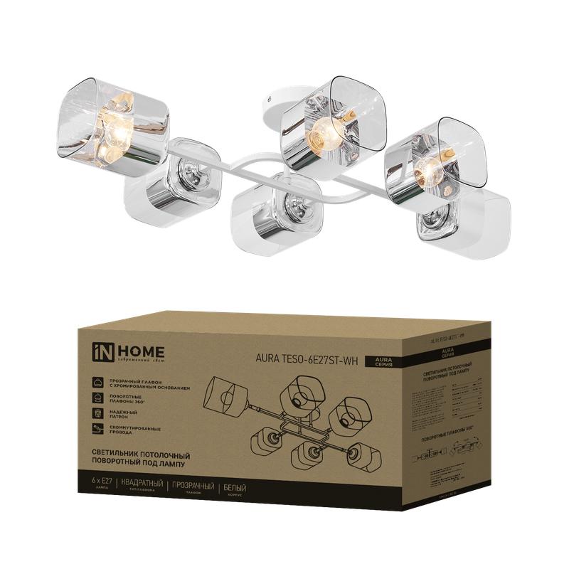 4690612063584 | Светильник AURA TESO-6E27ST-WH 6хE27потолочн. поворотн.; плафоны прозр./корпус бел. IN HOME