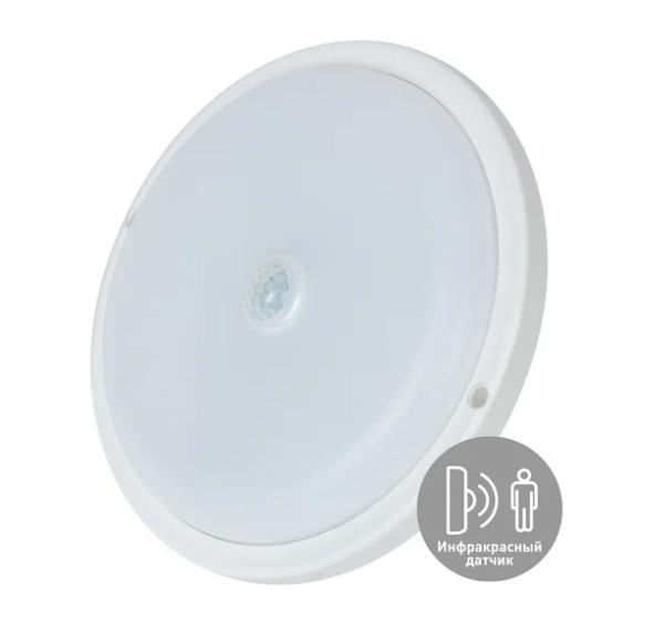 Светильник настенно- потолочный для ЖКХ ДПО 20Вт круг IP65 4000K 230В с инфракрасн. датчиком КОСМОС KOC_DPO20WR1IR.4K