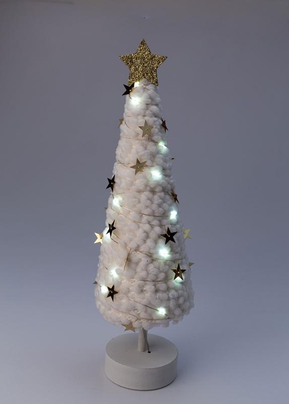KOC_TAB-B105 | Светильник настольный "Елка" дизайн 2 (белое основание золотая звезда) 20LED плюш 11.5х38.5см тепл. бел. КОСМОС