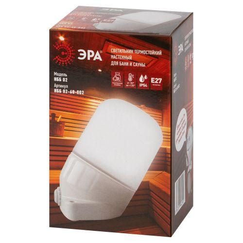 Б0064018 | Светильник НББ 02-60-002 для бани керамика/стекло наклонный IP54 E27 max 60Вт 150х90х85 бел. Эра