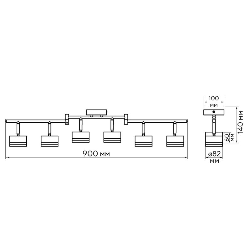 5066960 | Светильник PCL-0906 max 20Вт (каждая лампа) 6xGX53 IP20 230В BL настен./потолочн. декор. под лампу JazzWay