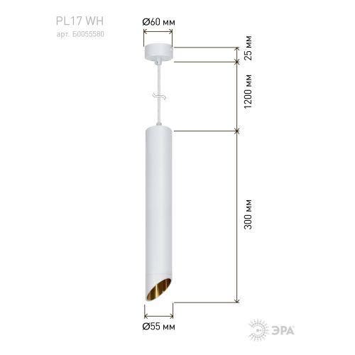 Б0055580 | Светильник подвесной (подвес) PL 17 WH MR16/GU10 потолочный цилиндр бел. ЭРА