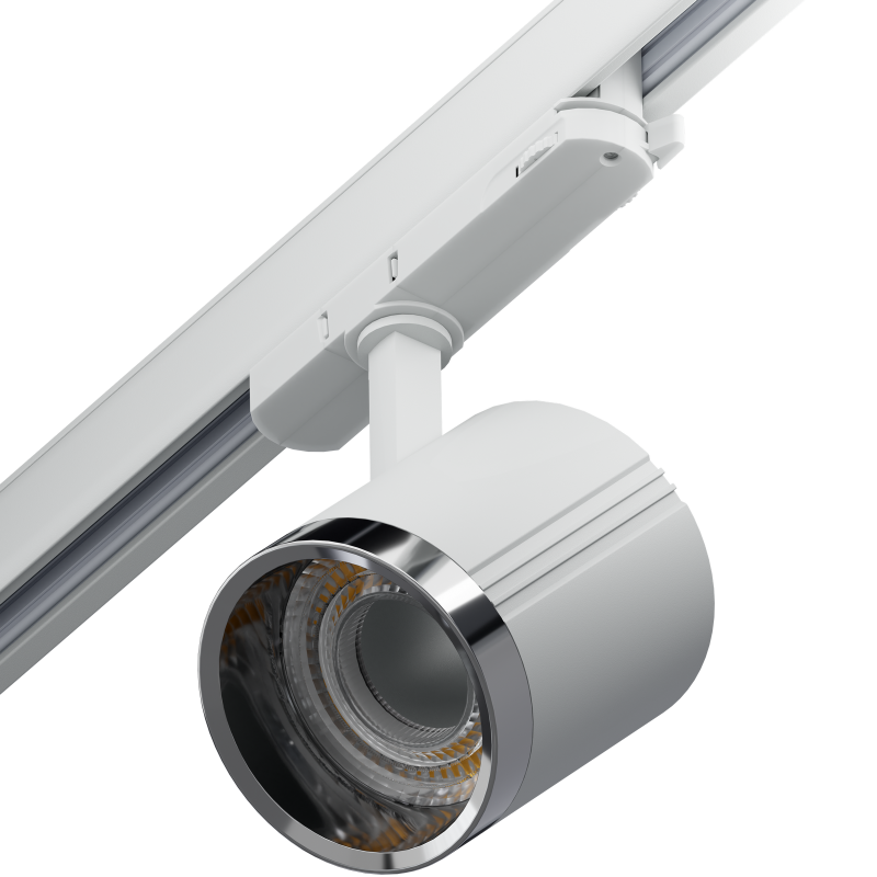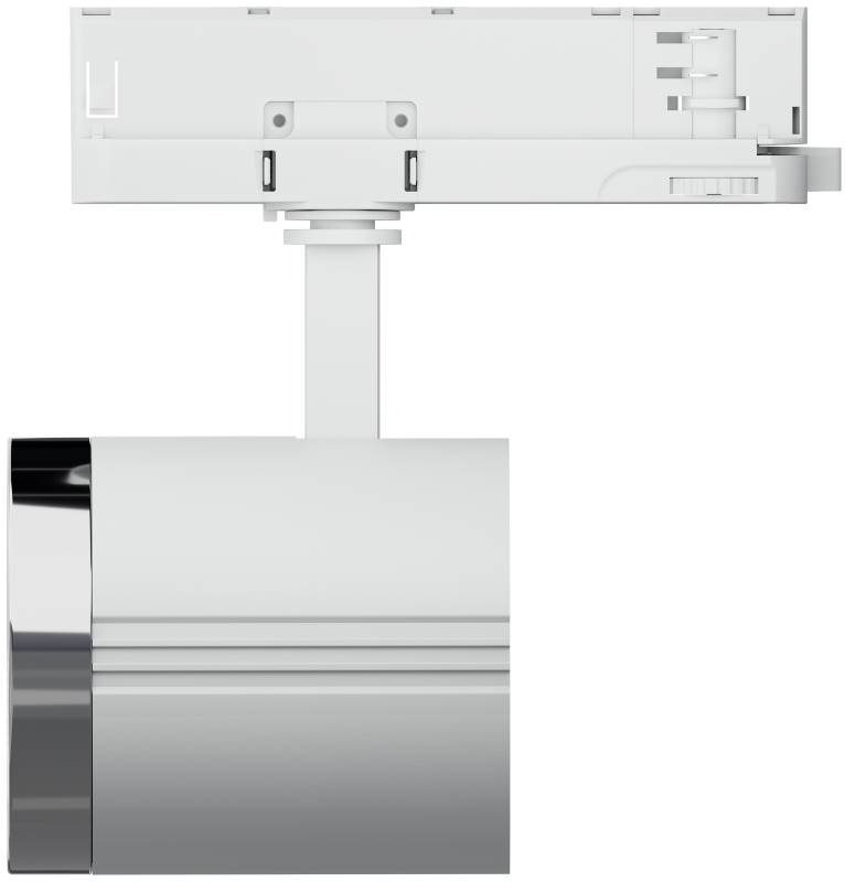 Корпус светильника выполнен из алюминия. Конструкция позволяет вращать светильник на 340° вокруг своей оси и регулировать угол наклона. Использование кольца разной высоты позволяет создать разный угол светового потока: 25° (хромированное высокое кольцо) и 35° (низкое кольцо).