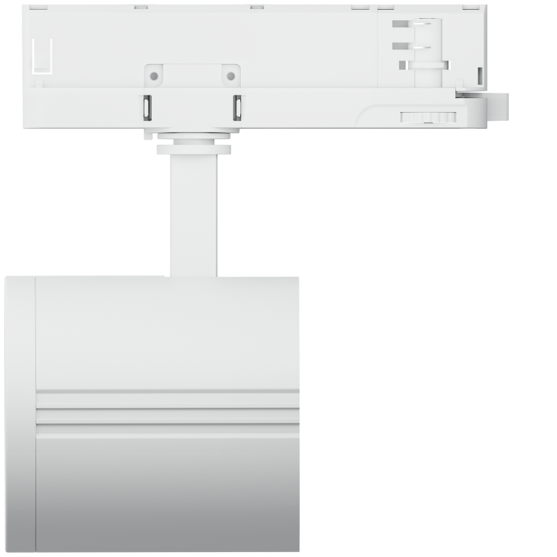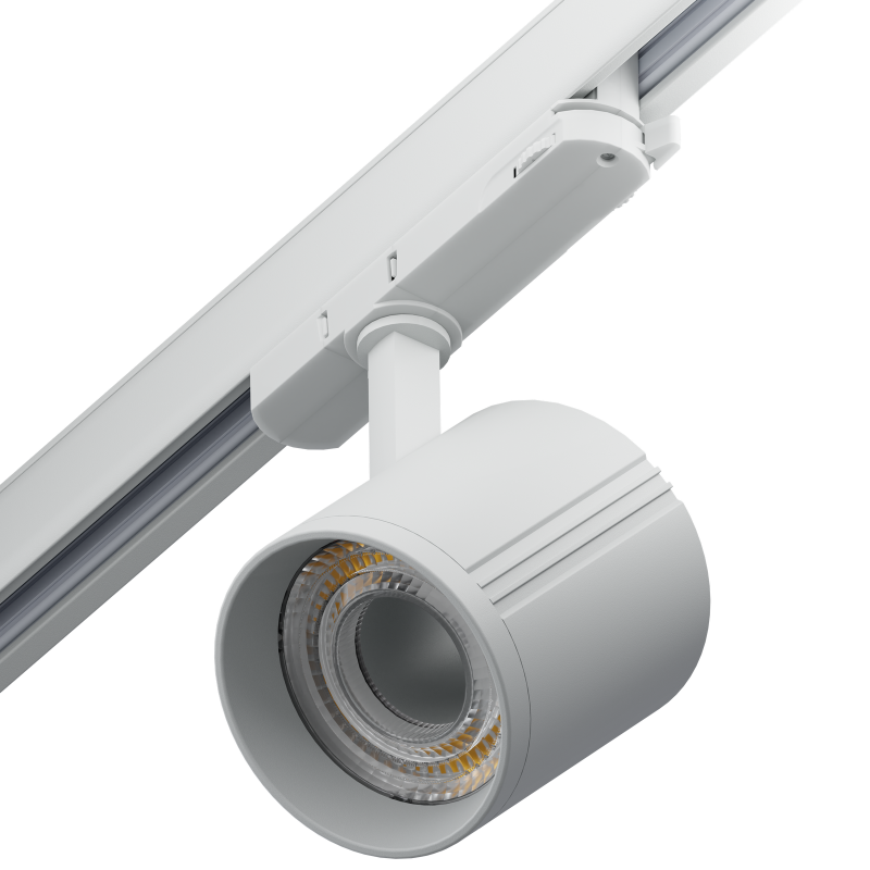 Корпус светильника выполнен из алюминия. Конструкция позволяет вращать светильник на 340° вокруг своей оси и регулировать угол наклона. Использование кольца разной высоты позволяет создать разный угол светового потока: 25° (хромированное высокое кольцо) и 35° (низкое кольцо).