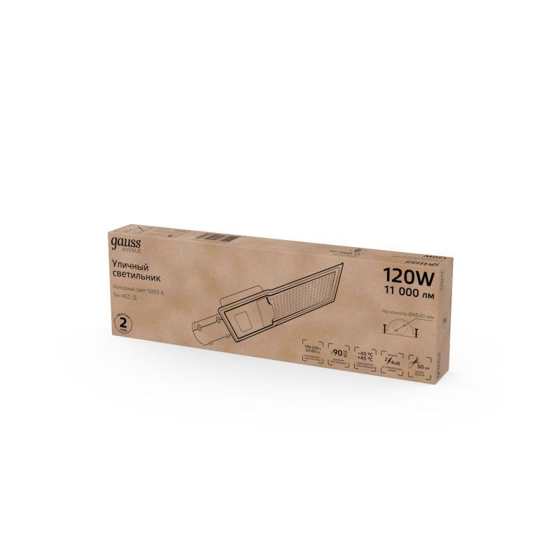 Светильник светодиодный Avenue 120Вт 5000К IP65 11000лм 190-250В 546х170х67мм ДКУ уличный консольный КСС Д черн. GAUSS 629536320