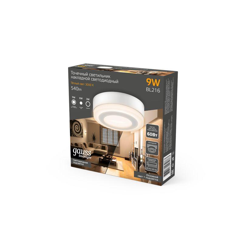 Светильник светодиодный Backlight 6+3Вт 3000К d145 накладной BL216 круг акрил GAUSS BL216