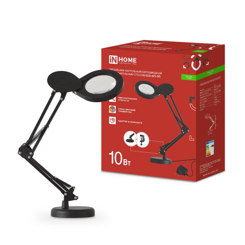 Светильник светодиодный настольный PLUS ССО-22Ч-ЛП 10Вт 3000-6500К 5х лупа с адаптером на основании + струбцина черн. IN HOME 4690612058139