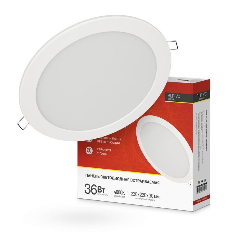 Светильник светодиодный RLP-VC 36Вт 4000К IP40 2880лм 230В 220мм кругл. встраив. панель бел. IN HOME 4690612040097