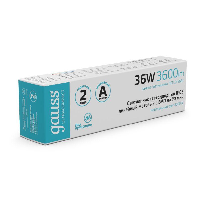 Светильник светодиодный Ultracompact 36Вт 4000К IP65 3600лм 1635х39х31.5мм линейный матов. с БАП 90мин GAUSS 143425236A