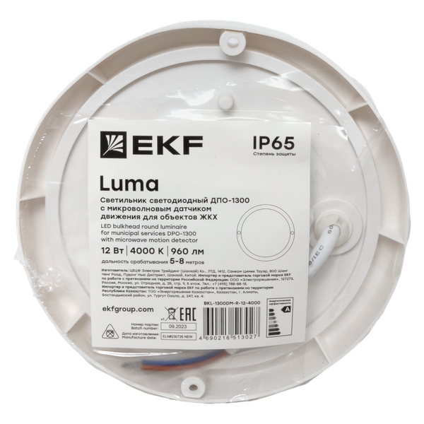 BKL-1300DM-R-12-6500 | Светильник светодиодный ЖКХ ДПО-1300 12Вт 6500К IP65 круг с микроволнов. датчиком движения LUMA EKF
